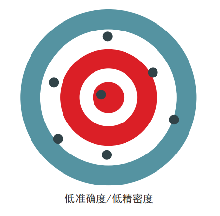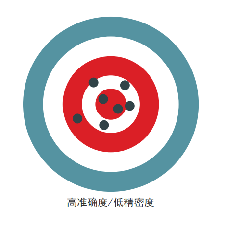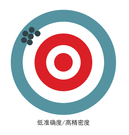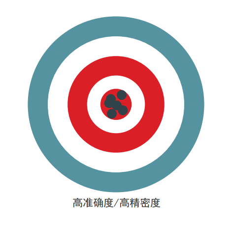精密度是可重復性的一種度量,或者說一個檢測結(jié)果與另一個檢測結(jié)果的相近程度。準確度表明所獲得的結(jié)果是否準確地反映了實際情況(接近真值)。當然,我們希望任何分析技術(shù)都能提供優(yōu)質(zhì)的精密度和準確度。