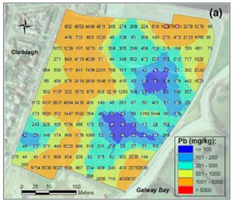 圖1. 在實施土壤修復項目的過程中采集到的樣本。左圖顯示為較差的采樣策略:采集的樣本數(shù)量不足,可能會出現(xiàn)大量的錯誤。右圖為正確的采樣方式:采集足夠數(shù)量的樣本,以確保場地各個區(qū)域的土壤都被檢測到。