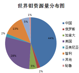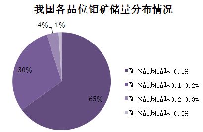 鉬在我國儲量居世界前列,陜西省華縣金堆鎮、遼寧葫蘆島、吉林、山西、河南、福建、廣東、湖南、四川、江西、甘肅、內蒙等省均有鉬礦,且儲量大,開發條件好,產量在全國占有重要地位。具有工業價值的鉬礦物主要是輝鉬礦,約有99%的鉬礦是以輝鉬礦(狀態開采出來的。我國鉬精礦主要對俄羅斯、日本以及西方國家出口。