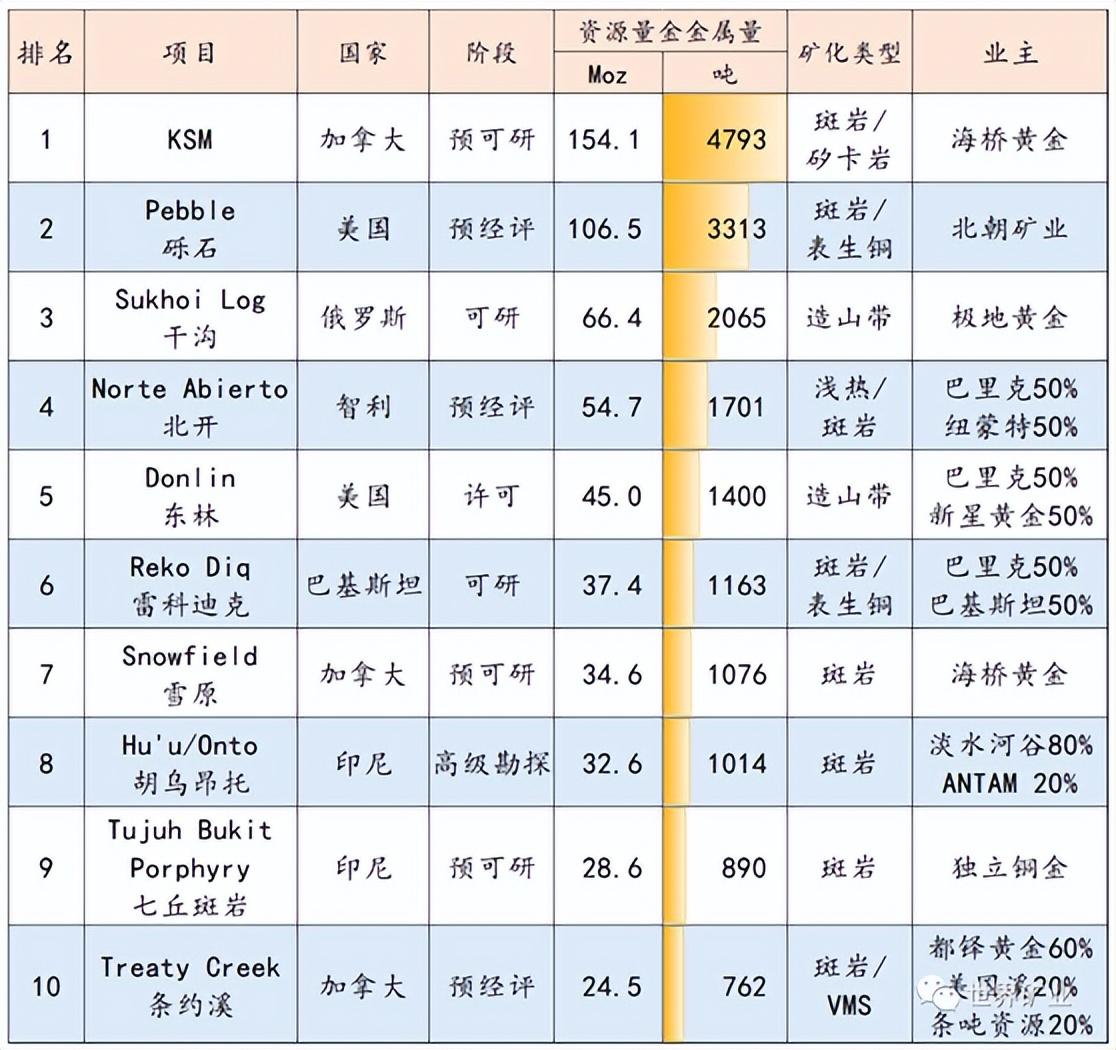在未開發(fā)的十大金礦方面,印度尼西亞的胡烏(Hu’u)地區(qū)的昂托(Onto)項目和七丘斑巖型銅金礦項目紛紛上榜!