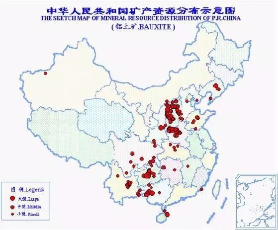 中國鋁土礦資源豐度屬中等水平,產地310處,分布于19個省(區)??偙S袃α康V石22.7億噸,居世界第7位。
