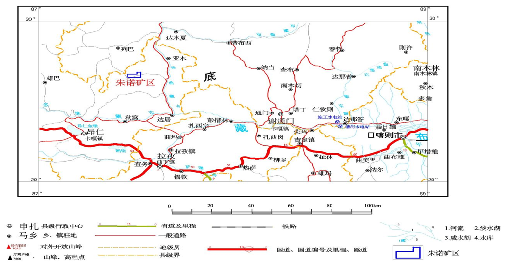 ▲礦區交通位置及礦權范圍示意圖