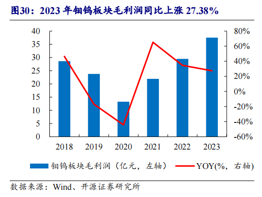 鉬鎢板塊方面,開源證券研報顯示,去年,洛陽鉬業(yè)全年鉬鎢產(chǎn)量合計2.36萬噸,營收為86.11億元,同比增長23.63%,毛利為37.51億元,創(chuàng)歷史最高紀(jì)錄。